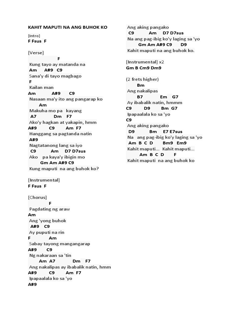 Am - G - Am break Dm O giliw ko sanay huwag magbago G CM7 Itong pag-ibig at pagsuyo mo Bm7 E7 Am AmG Pagkat ang buhay kong ito C E7 Am -. Na sanay hindi magbago ang yong pagtingin. O giliw ko miss na miss kita.